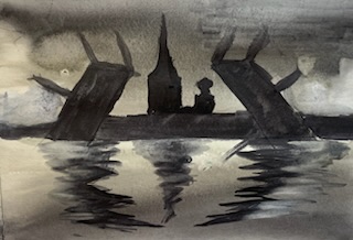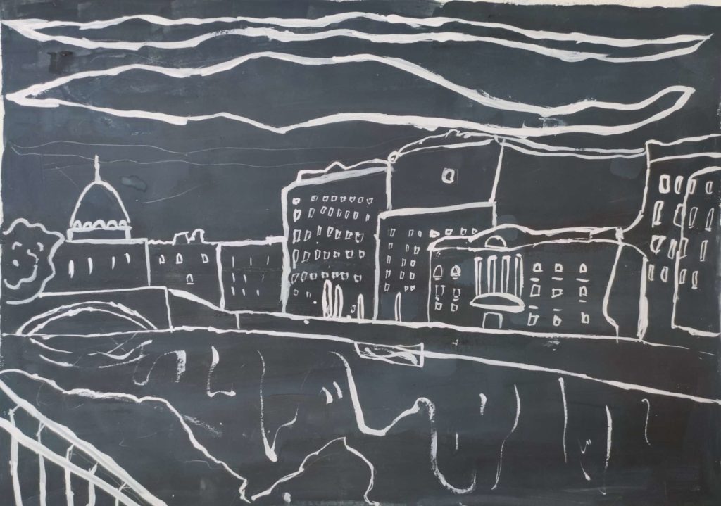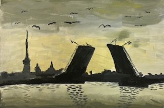 Шестакова Полина, «Вид на петропавловскую крепость через разводной мост», 7 лет, (Санкт Петербургская академическая школа рисунка и живописи им. Б. В. Лесова), руководитель: Власова Ольга Михайловна.Беляева Даша, «Вид на Петропавловскую крепость», 7лет, (Санкт Петербургская академическая школа рисунка и живописи им. Б. В. Лесова), руководитель: Антимова Татьяна Александровна
