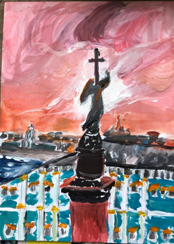 Цуранова Настя, «Восход над Дворцовой площадью», 8 лет, Академия художеств, руководитель: Полянская Юлия Михайловна.Ефремова Арина Юрьевна, «Парадная лестница Русского музея», 9 лет, Академия художеств, руководитель: Полянская Юлия Михайловна. Ксения Фоменко, «Вид с улицы на Казанский собор», 11 лет (Санкт Петербургская академическая школа рисунка и живописи им. Б. В. Лесова), руководитель: Власова Ольга Михайловна.Болотова Карина, «Лахта центр с видом на финский залив», 8 лет, (Санкт Петербургская академическая школа рисунка и живописи им. Б. В. Лесова), руководитель: Власова Ольга Михайловна. Дьякова Алиса, «Вид с Невы на Исаакиевский собор», 10 лет, (Санкт Петербургская академическая школа рисунка и живописи им. Б. В. Лесова), руководитель: Власова Ольга Михайловна.Дьякова Алиса, «Вид с Невы на Исаакиевский собор», 10 лет, (Санкт Петербургская академическая школа рисунка и живописи им. Б. В. Лесова), руководитель: Власова Ольга Михайловна.Ксения Фоменко, «Медный всадник», 10 лет, (Санкт Петербургская академическая школа рисунка и живописи им. Б. В. Лесова), руководитель: Антимова Татьяна Александровна.Копытов Миша, «Пасмурный день», 9 лет, (Санкт Петербургская академическая школа рисунка и живописи им. Б. В. Лесова), руководитель: Антимова Татьяна Александровна.Волкова Янина Александровна, «Чайка-воровка. Случай у Летнего сада», 10 лет, ГБНОУ «СПб ГДТЮ», руководитель: Матюхина Елена Геннадиевна.Зубкова Кира, «Парадная лестница Академии художеств в СПб», 9 лет, Санкт-Петербургская Академия художеств, руководитель: Бабуха Ирина Леонидовна.Зубкова Кира, «Исаакиевский собор», 9 лет, Санкт-Петербургская Академия художеств, руководитель: Бабуха Ирина Леонидовна.